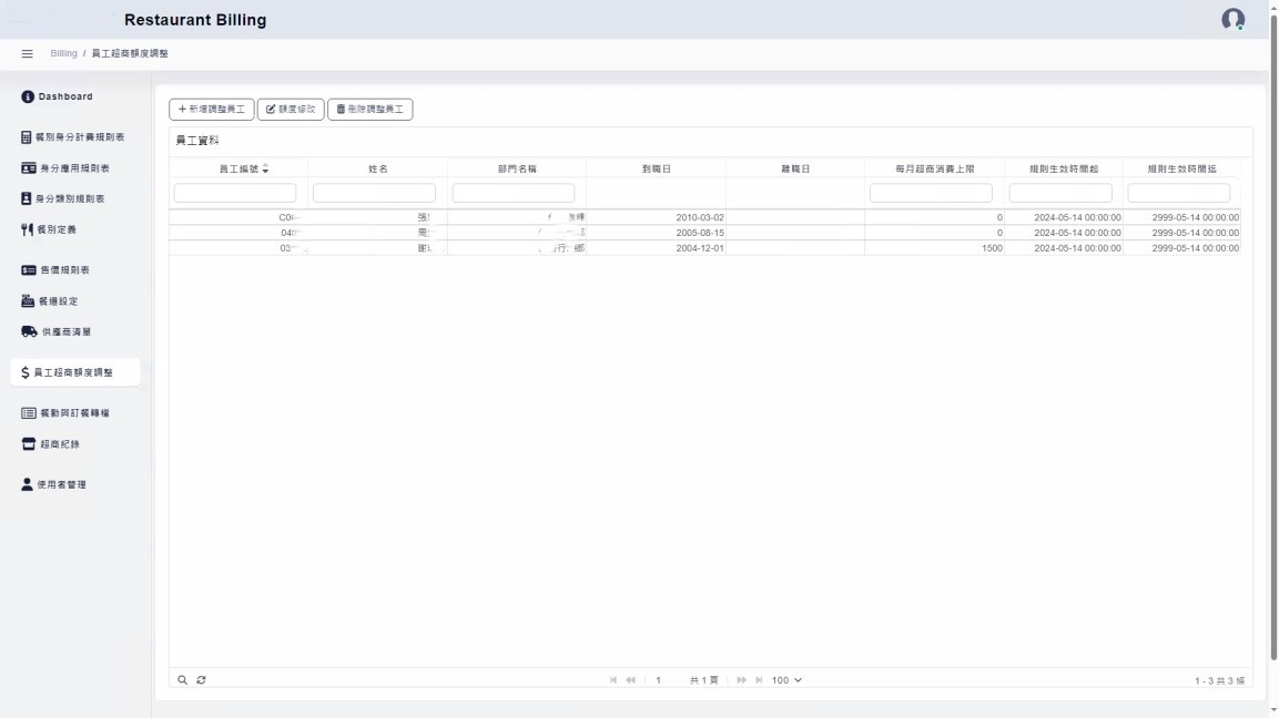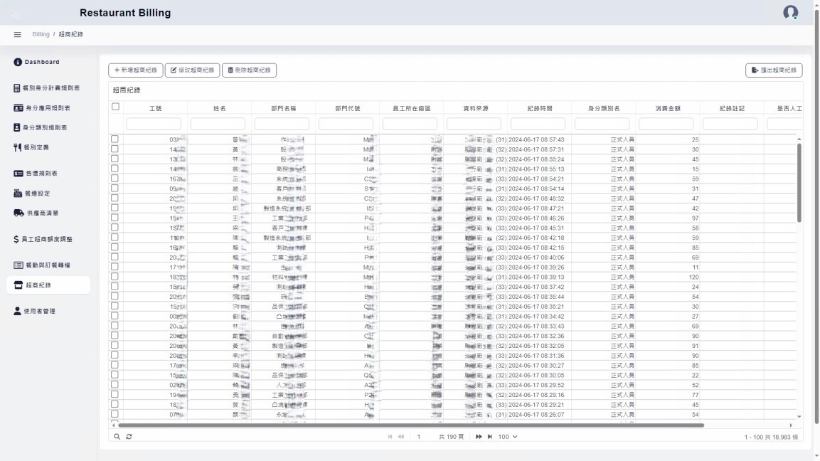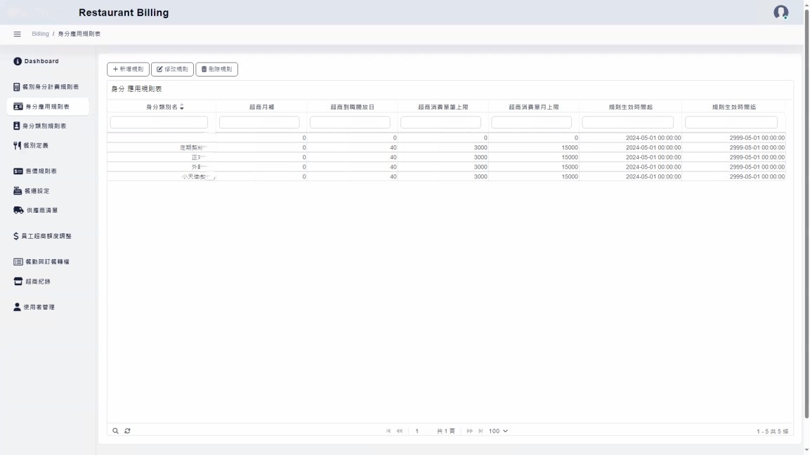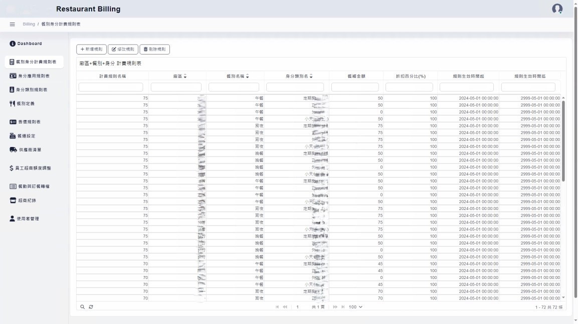 根據不同的用餐類別(如早餐、午餐、晚餐)和身分(如員工、訪客、學生)設定不同的計費規則,可以彈性管理費用計算,滿足多樣化的需求。