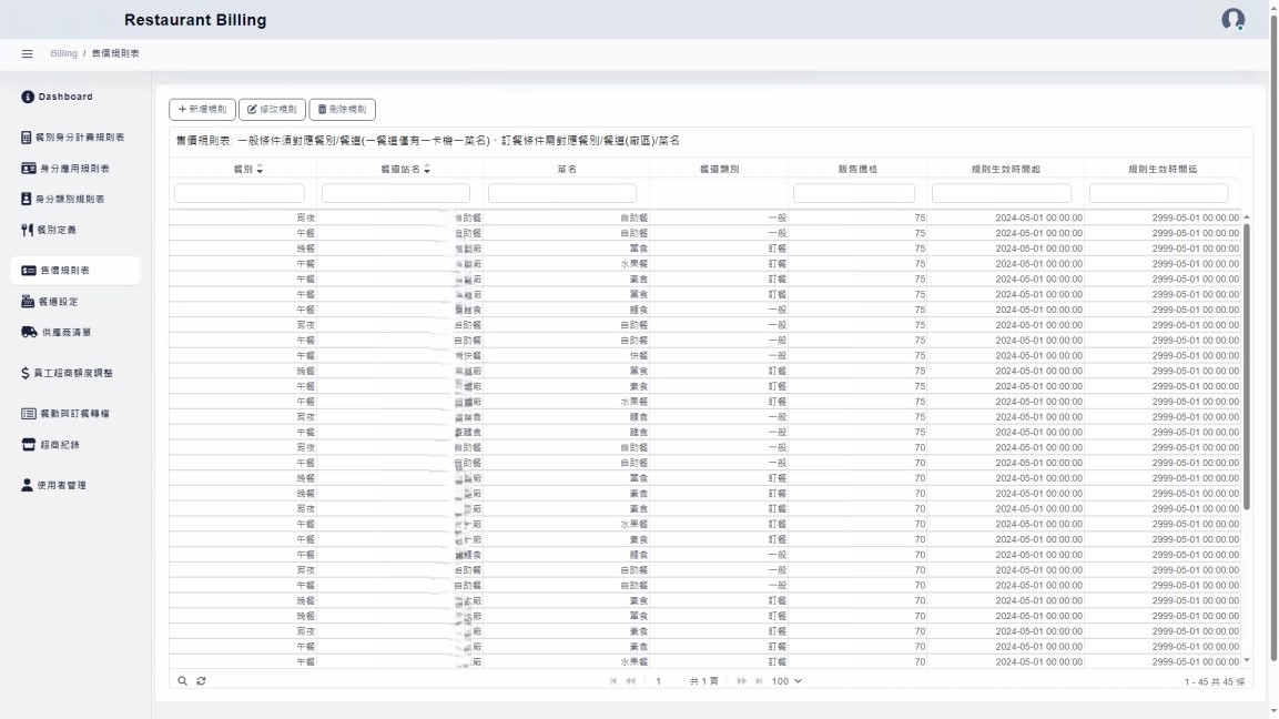 定義餐品的售價計算方式/規則,這些規則可以根據多種條件來設置,如時間段、客戶類型、銷售地點等。