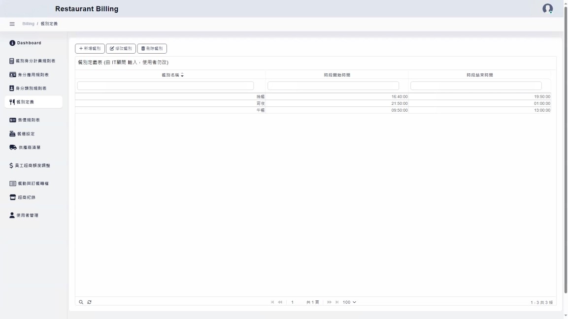 設定和管理不同餐別(如早餐、午餐、晚餐等)的具體資訊和規則。