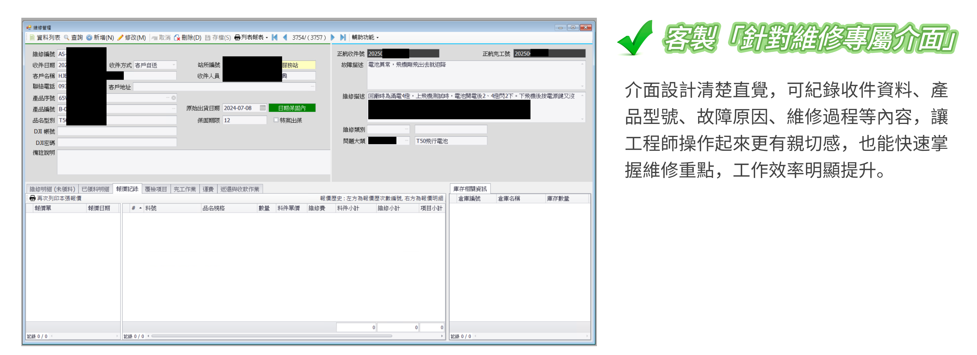 透過以上完整的客製化設計,不僅讓系統更貼近維修工程師的實際工作流程,也大幅提升使用意願與資訊同步效率,成功解決原本的推行瓶頸,為客戶帶來真正符合需求的數位轉型成果。